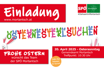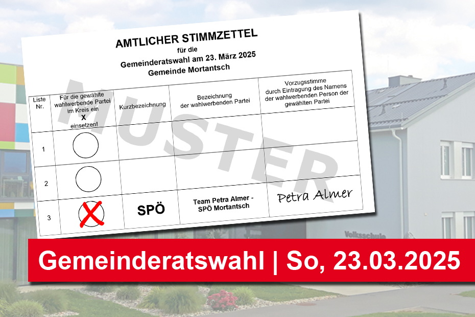 Weiterlesen »Am 23.03.2025 SPÖ Mortantsch wählenDie Neuwahl des Gemeinderats in Mortantsch findet am 23. März 2025 statt.