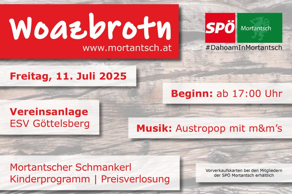 Am 11.07.2025 findet wieder das traditionelle Woazbrotn der SPÖ Mortantsch statt.