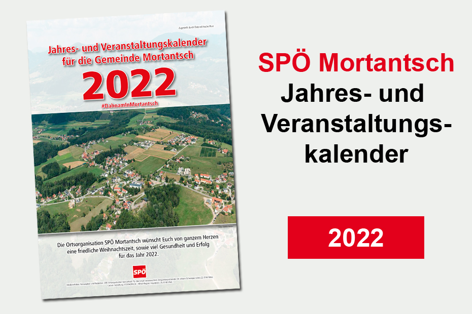Der traditionelle Jahres- und Veranstaltungskalender 2022 der SPÖ Mortantsch für die Gemeinde Mortantsch, wird wieder bis Anfang Jänner sämtliche Haushalte der Gemeinde erreichen.